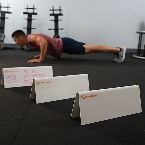 The Stroops hurdles are multipurpose hurdles for speed and agility training. The Hurdles are built with durable PVC, whiteboard-like material that is built to last and can take a beating. The surface of the Hurdles serves as a writing surface so you can use them to write down a workout or mark out and set up a station during circuit training.